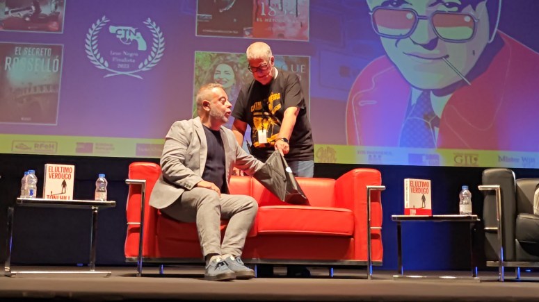 Antonio Parra hizo una mención especial para Alexis Ravelo en una bonita presentación de esta edición haciendo un símil de una manzana con el mundo de la novela negra y los festivales. Cerró con la épica frase de Alexis «¡Sigan leyendo carajo!»