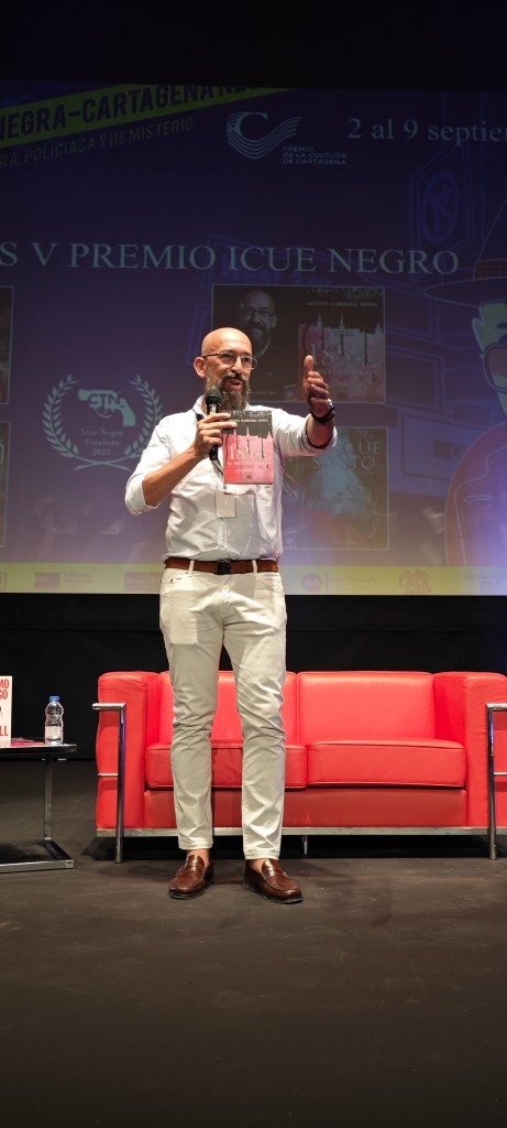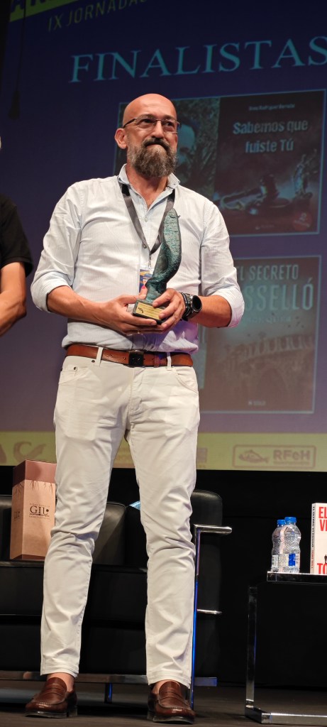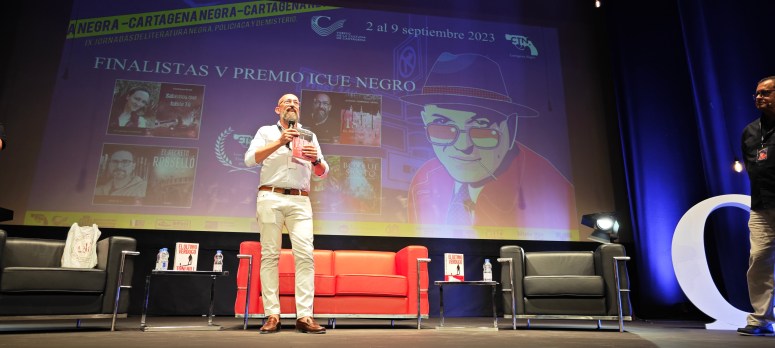 Para cerrar la jornada Francisco Marín gastó una de sus bromas sobre quién sería el ganador. En una bolsa metió cuatro papelitos y le pidió a Toni Hill el favor de sacar uno (el muy bromista). Entregó el premio Antonio Caravaca de las Bodegas Juan Gil.