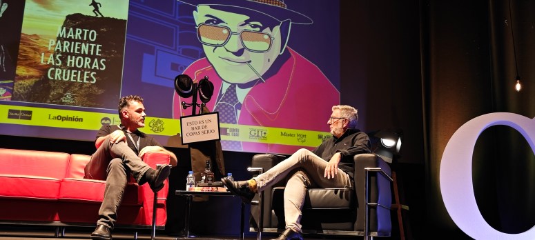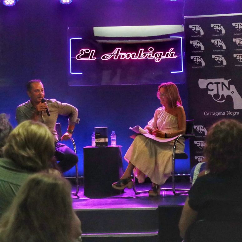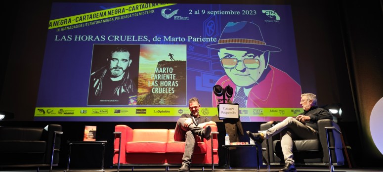 Seguidamente, el escenario del Teatro Circo recibe al que fue ganador del IV Premio de Novela Cartagena Negra en 2020, Marto Pariente con La cordura del idiota. En esta edición, nos presentó su última novela Las horas crueles de la mano de Manuel Acosta, que todos los años sorprende con algo nuevo.