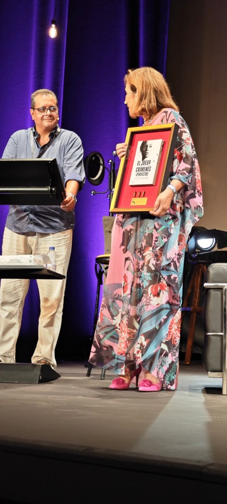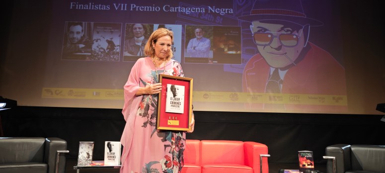 Reyes Calderón, fue la ganadora del Premio Novela Cartagena Negra, cuyo trofeo es su propia obra perforada por tres agujeros de bala. ¡Enhorabuena!