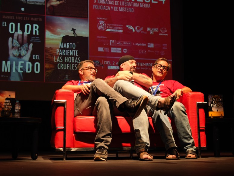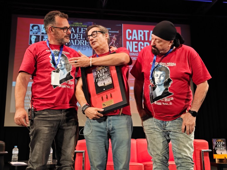 El VIII Premio de Novela Cartagena Negra se celebró en un ambiente de expectación y emoción, donde se reconoció el talento literario en el ámbito del género negro. Este año, el galardón ha sido disputado por cuatro destacados autores: Carlos Augusto Casas con «La ley del padre», Carlos Salem con «Los dioses también mueren», Manuel Ríos San Martín con «El olor del miedo», quien no pudo asistir debido a que se encontraba en pleno rodaje, pero envió un video de disculpa, y Marto Pariente con su obra «Las horas crueles».